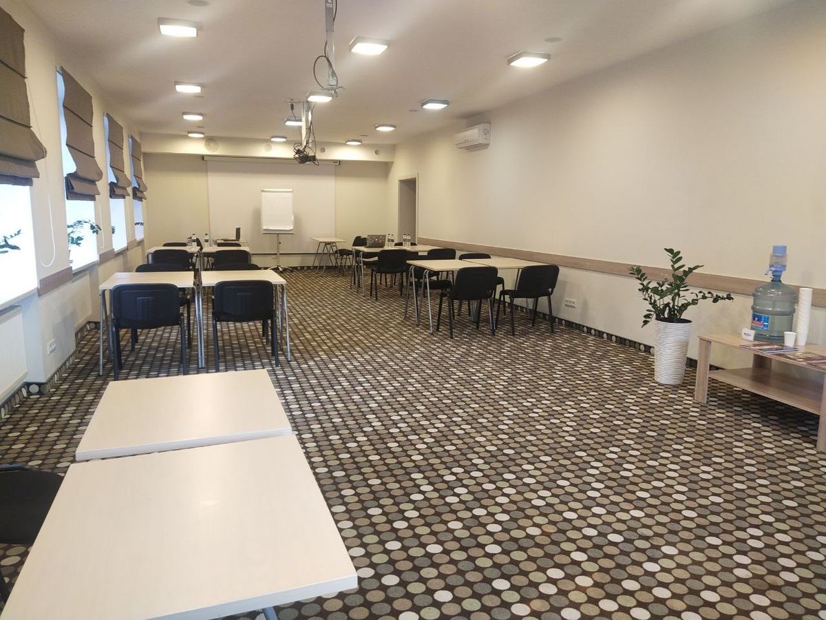 у вартість входить: стіл, крісло, фліпчарт, проектор, вода/стаканчики, інтернет, вішаки
